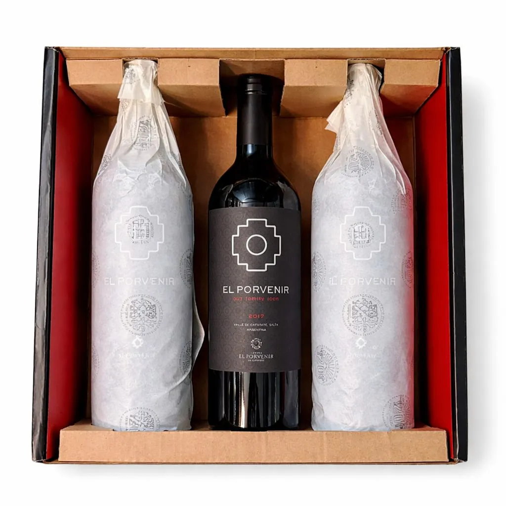 Elegante estuche que reúne tres botellas de El Porvenir Ícono, una línea que representa la máxima expresión y personalidad de la bodega. Vinos de gran carácter, profundidad y elegancia, pensados para ocasiones especiales o para quienes buscan una experiencia enológica superior. Su presentación cuidada lo convierte en un regalo distinguido que no pasa desapercibido.